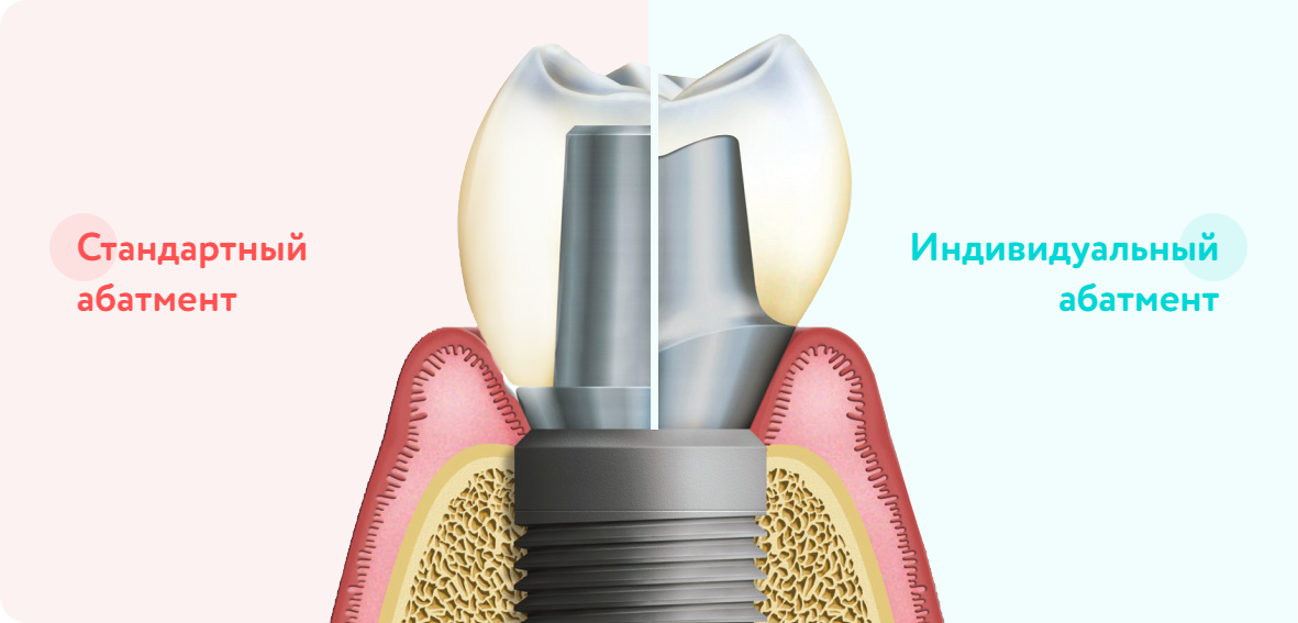 В некоторых клиниках, с целью экономии, могут практиковать установку стандартных абатментов — которые НЕ учитывают индивидуальную анатомию пациента, это приводит к снижению срока службы конструкции и при этом страдает эстетика.